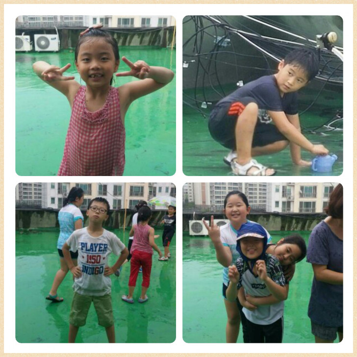 더위에 지친 아이들이 강아지처럼 빗 속으로 ~~